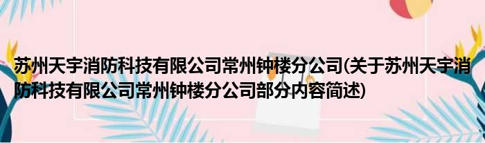 苏州天宇消防科技有限公司常州钟楼分公司(关于苏州天宇消防科技有限公司常州钟楼分公司部分内容简述)