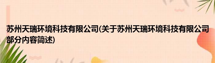 苏州天瑞环境科技有限公司(关于苏州天瑞环境科技有限公司部分内容简述)