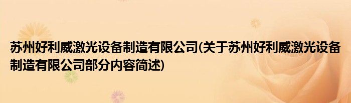 苏州好利威激光设备制造有限公司(关于苏州好利威激光设备制造有限公司部分内容简述)