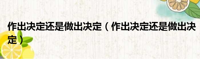 大家好,小活来为大家解答以上的问题。作出决定还是做出决定,作出决定还是做出决定这个很多人还不知道,现在让我们一起来看看吧!