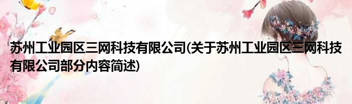 苏州工业园区三网科技有限公司(关于苏州工业园区三网科技有限公司部分内容简述)