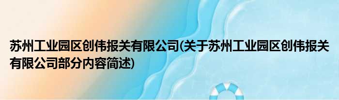 苏州工业园区创伟报关有限公司(关于苏州工业园区创伟报关有限公司部分内容简述)