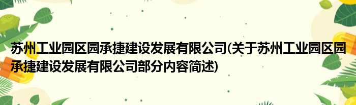 苏州工业园区园承捷建设发展有限公司(关于苏州工业园区园承捷建设发展有限公司部分内容简述)