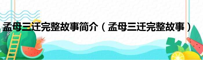 孟母三迁完整故事简介(孟母三迁完整故事)