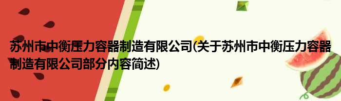苏州市中衡压力容器制造有限公司(关于苏州市中衡压力容器制造有限公司部分内容简述)