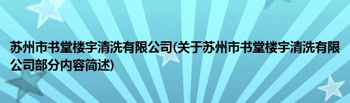 苏州市书堂楼宇清洗有限公司(关于苏州市书堂楼宇清洗有限公司部分内容简述)