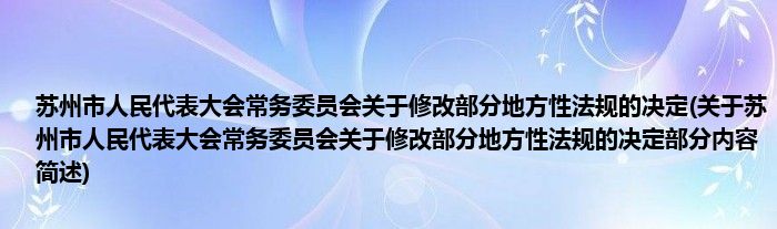 苏州市人民代表大会常务委员会关于修改部分地方性法规的决定(关于苏州市人民代表大会常务委员会关于修改部分地方性法规的决定部分内容简述)