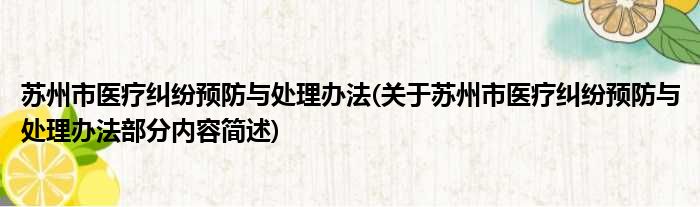 苏州市医疗纠纷预防与处理办法(关于苏州市医疗纠纷预防与处理办法部分内容简述)