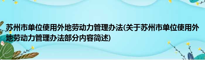 苏州市单位使用外地劳动力管理办法(关于苏州市单位使用外地劳动力管理办法部分内容简述)
