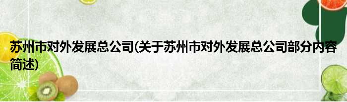 苏州市对外发展总公司(关于苏州市对外发展总公司部分内容简述)