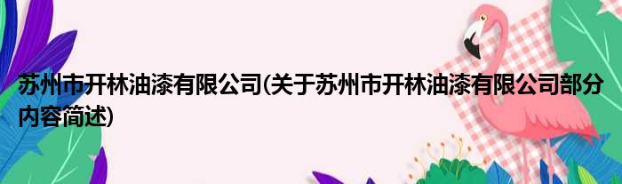 苏州市开林油漆有限公司(关于苏州市开林油漆有限公司部分内容简述)