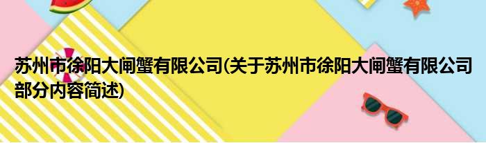苏州市徐阳大闸蟹有限公司(关于苏州市徐阳大闸蟹有限公司部分内容简述)