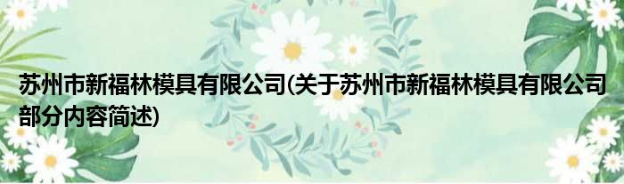 苏州市新福林模具有限公司(关于苏州市新福林模具有限公司部分内容简述)