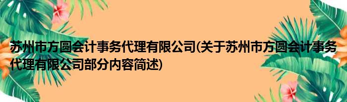 苏州市方圆会计事务代理有限公司(关于苏州市方圆会计事务代理有限公司部分内容简述)