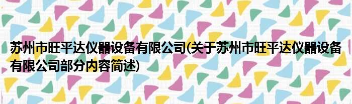 苏州市旺平达仪器设备有限公司(关于苏州市旺平达仪器设备有限公司部分内容简述)