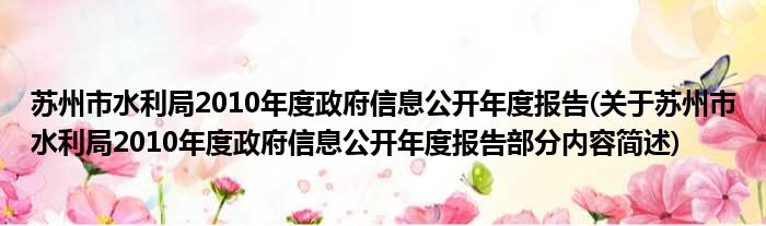 导读 大家好,今天小方来说说一篇关于苏州市水利局2010年度政府信息公开年度报告,关于苏州市水利局2010年度政府信息公开年度报告部分内容简述的