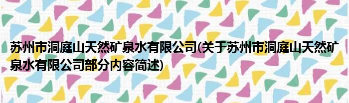 苏州市洞庭山天然矿泉水有限公司(关于苏州市洞庭山天然矿泉水有限公司部分内容简述)