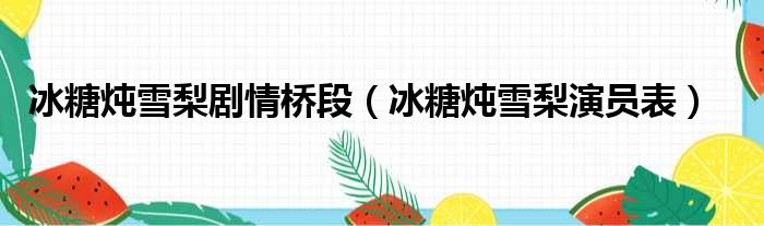 大家好,小活来为大家解答以上的问题。冰糖炖雪梨剧情桥段,冰糖炖雪梨演员表这个很多人还不知道,现在让我们一起来看看吧!