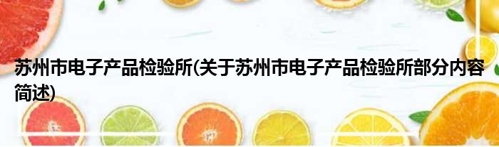 苏州市电子产品检验所(关于苏州市电子产品检验所部分内容简述)