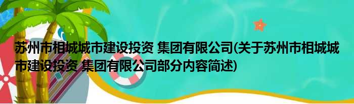 苏州市相城城市建设投资 集团有限公司(关于苏州市相城城市建设投资 集团有限公司部分内容简述)