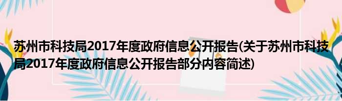导读 大家好,今天小方来说说一篇关于苏州市科技局2017年度政府信息公开报告,关于苏州市科技局2017年度政府信息公开报告部分内容简述的文章,那