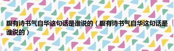 腹有诗书气自华这句话是谁说的(腹有诗书气自华这句话是谁说的)