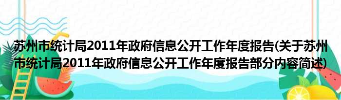 苏州市统计局2011年政府信息公开工作年度报告(关于苏州市统计局2011年政府信息公开工作年度报告部分内容简述)