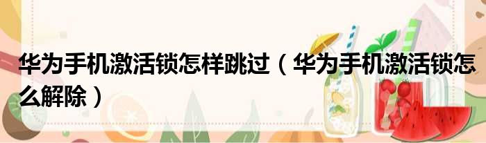 华为手机激活锁怎样跳过(华为手机激活锁怎么解除)