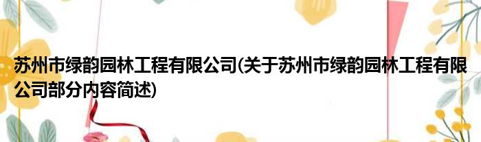 苏州市绿韵园林工程有限公司(关于苏州市绿韵园林工程有限公司部分内容简述)