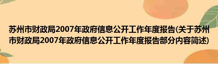 苏州市财政局2007年政府信息公开工作年度报告(关于苏州市财政局2007年政府信息公开工作年度报告部分内容简述)