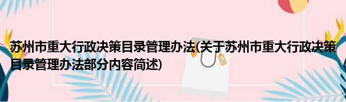 苏州市重大行政决策目录管理办法(关于苏州市重大行政决策目录管理办法部分内容简述)
