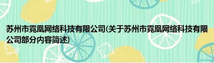 苏州市霓凰网络科技有限公司(关于苏州市霓凰网络科技有限公司部分内容简述)