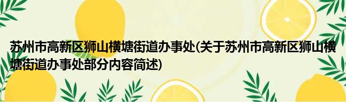苏州市高新区狮山横塘街道办事处(关于苏州市高新区狮山横塘街道办事处部分内容简述)