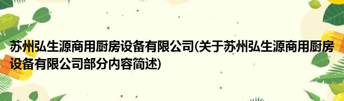 苏州弘生源商用厨房设备有限公司(关于苏州弘生源商用厨房设备有限公司部分内容简述)