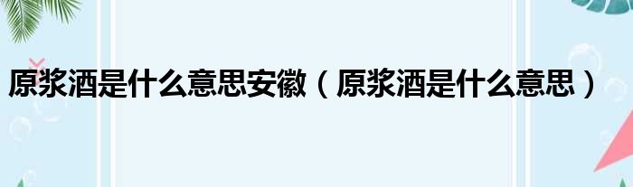 原浆酒是什么意思安徽(原浆酒是什么意思)