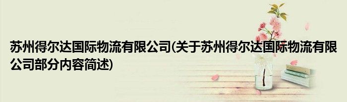 苏州得尔达国际物流有限公司(关于苏州得尔达国际物流有限公司部分内容简述)