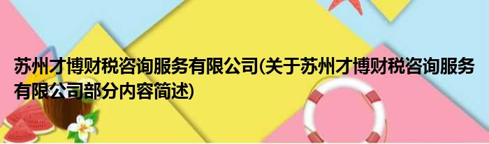 苏州才博财税咨询服务有限公司(关于苏州才博财税咨询服务有限公司部分内容简述)