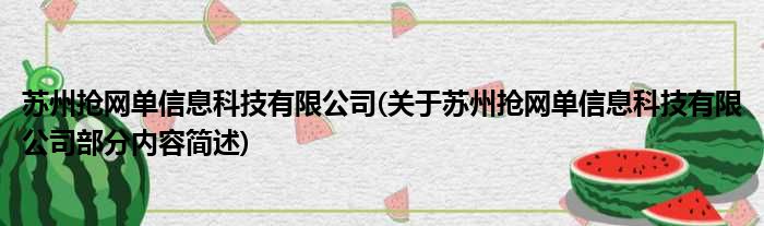 苏州抢网单信息科技有限公司(关于苏州抢网单信息科技有限公司部分内容简述)