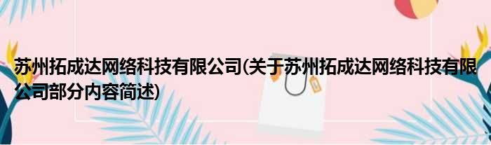 苏州拓成达网络科技有限公司(关于苏州拓成达网络科技有限公司部分内容简述)