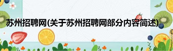 苏州招聘网(关于苏州招聘网部分内容简述)