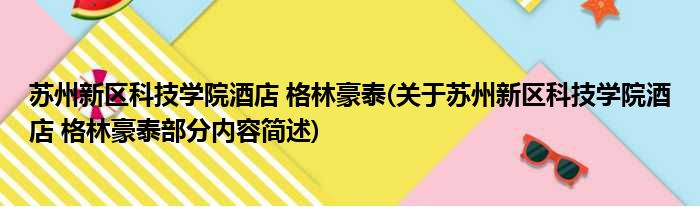 苏州新区科技学院酒店 格林豪泰(关于苏州新区科技学院酒店 格林豪泰部分内容简述)
