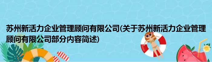 苏州新活力企业管理顾问有限公司(关于苏州新活力企业管理顾问有限公司部分内容简述)