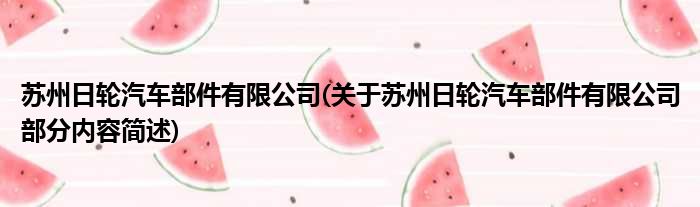 苏州日轮汽车部件有限公司(关于苏州日轮汽车部件有限公司部分内容简述)