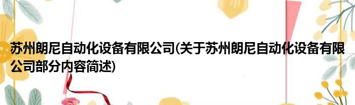 苏州朗尼自动化设备有限公司(关于苏州朗尼自动化设备有限公司部分内容简述)