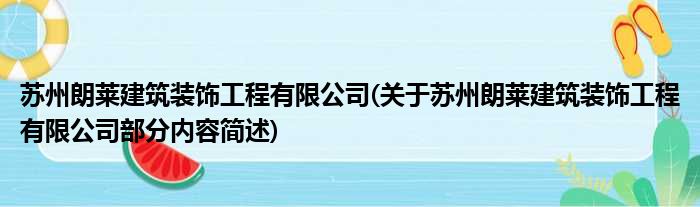 苏州朗莱建筑装饰工程有限公司(关于苏州朗莱建筑装饰工程有限公司部分内容简述)