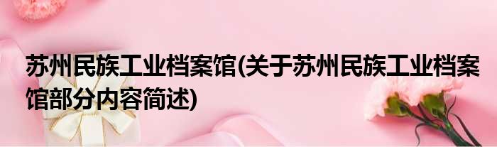 导读 大家好,今天小方来说说一篇关于苏州民族工业档案馆,关于苏州民族工业档案馆部分内容简述的文章,那么现在就为大家来简单介绍下,希望对各