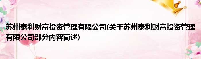 苏州泰利财富投资管理有限公司(关于苏州泰利财富投资管理有限公司部分内容简述)