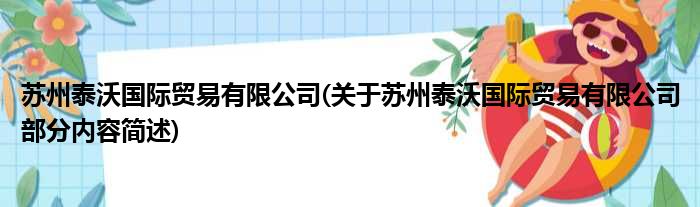 苏州泰沃国际贸易有限公司(关于苏州泰沃国际贸易有限公司部分内容简述)