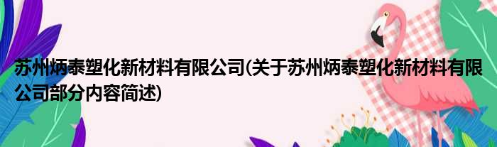苏州炳泰塑化新材料有限公司(关于苏州炳泰塑化新材料有限公司部分内容简述)