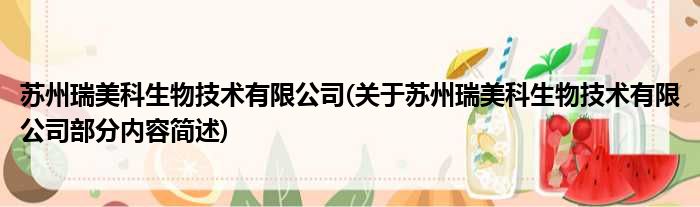 苏州瑞美科生物技术有限公司(关于苏州瑞美科生物技术有限公司部分内容简述)